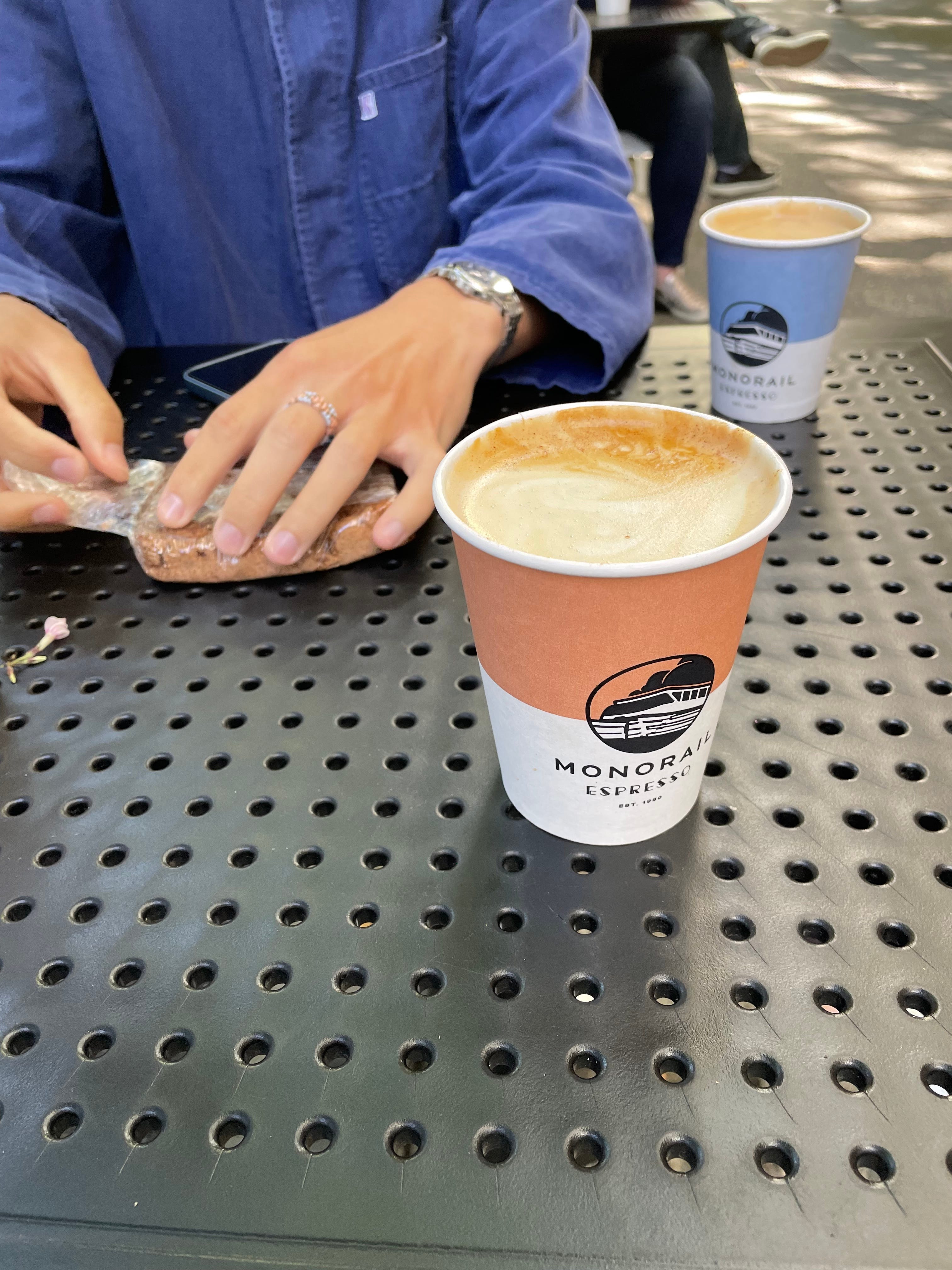 I am sure I’m not alone in feeling like the pinnacle of human existence is to go to a cute cafe in a cute outfit and order a cute cappuccino. Accepted activities to do at said cafe are: type away furiously on a laptop, write in a pen and paper journal, people watch, or gossip with your friends. Any of those would complete the day. I adore getting coffee, and I especially adore it on a rainy day. Some of my favorite cafes in Seattle, recently: