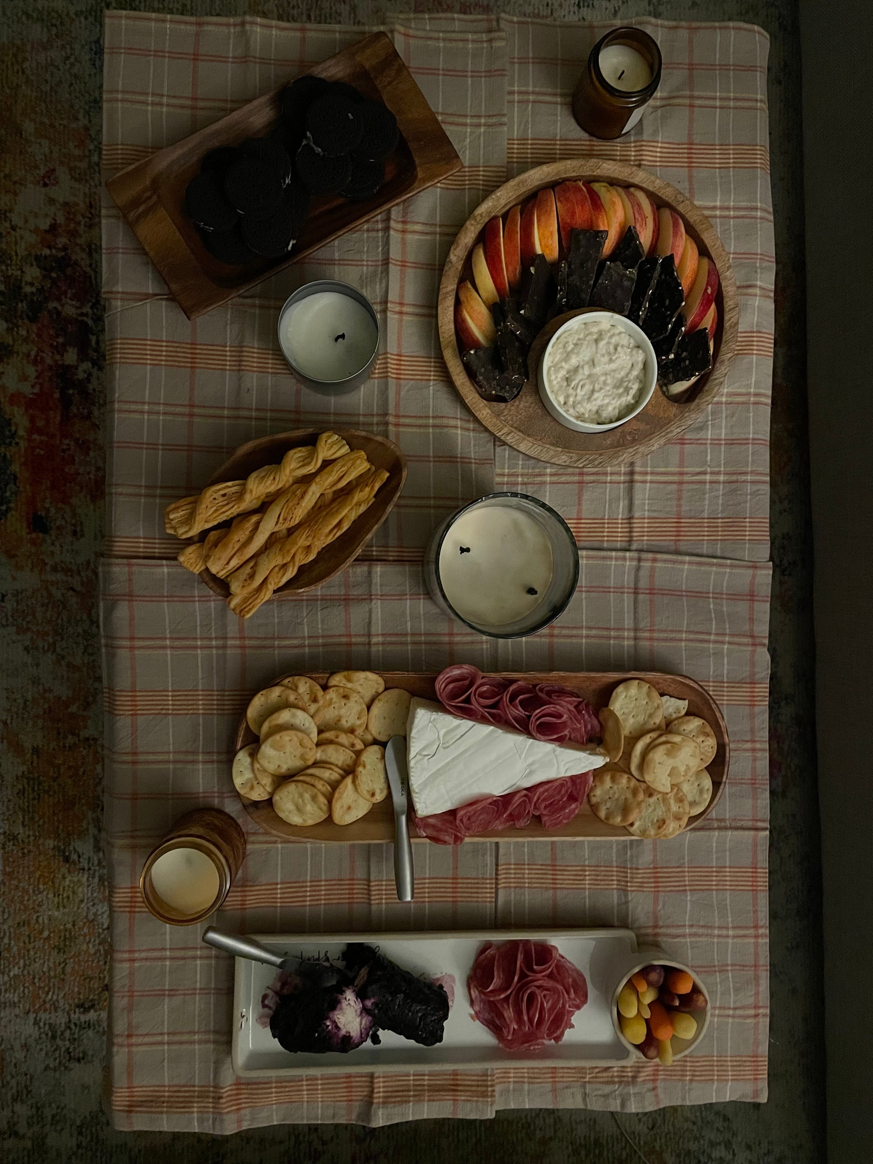 Happy Halloween week! I do need to take a second to share an obligatory photo of my charcuterie board I made for me and R. I wasn’t that proud of the selection of items, but I had to do the best with the challenges I was facing (Trader Joe’s at 5pm on a Tuesday… everything was out of stock). This is the second year I’ve stayed in on Halloween and opted for a movie night with yummy treats and I have to say, it beats going to a random college party, sorry.