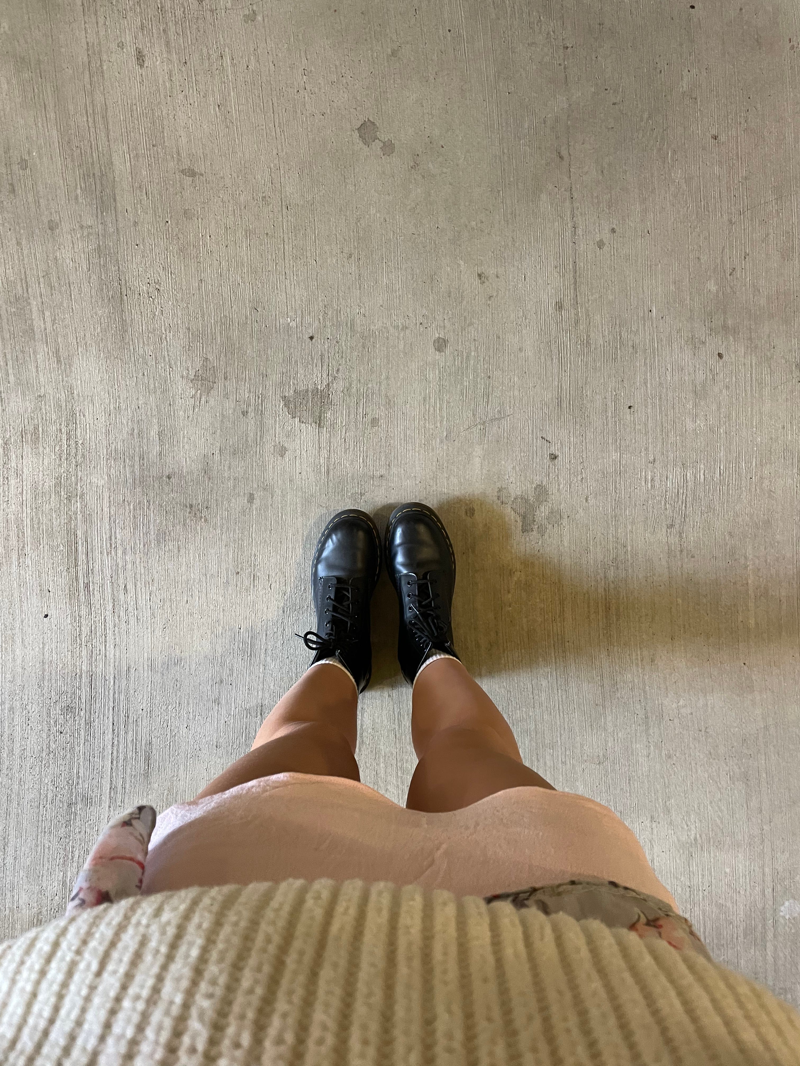 01. My Aritzia pink mini dress / Doc Martens / thrifted sweater / headscarf I got from M’s mom. This was a Trader Joe’s outfit I threw on and didn’t expect to feel as cute as I did in it. The scarf around the skirt was my way of forcing myself to get creative with accessories and it was so fun.