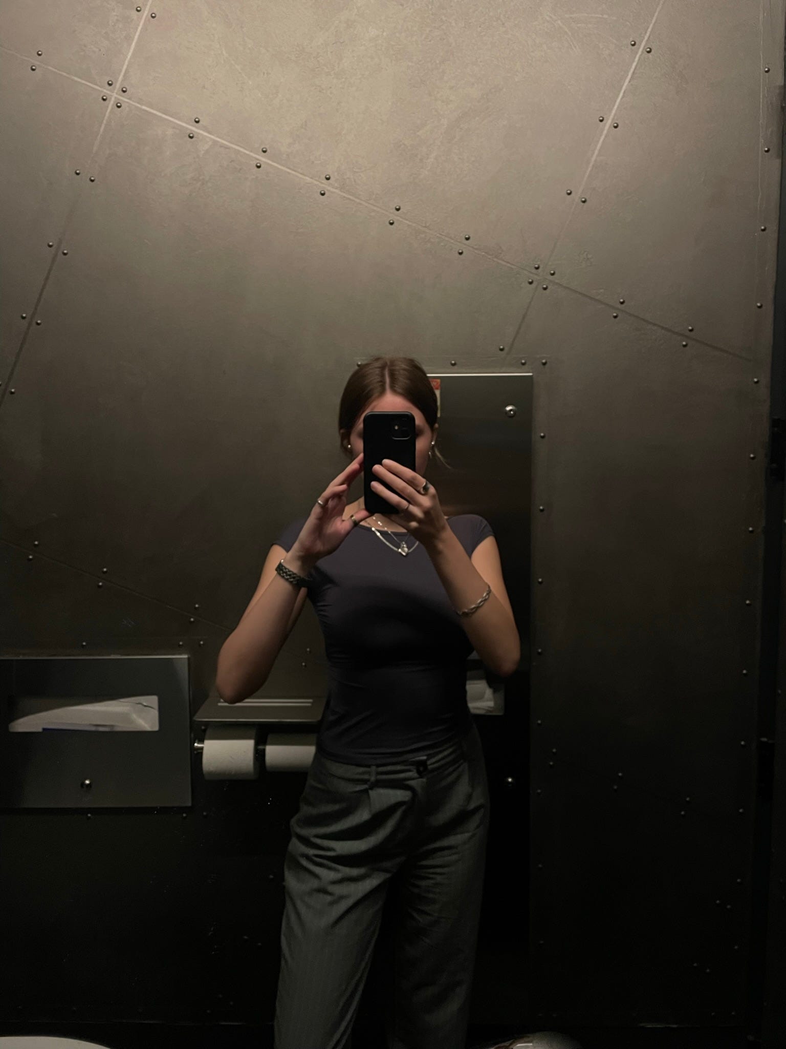 04. Grey slacks / backless top / penny loafers for Friday dinner. I was 3 drinks in and pretty hammered when I took this, oops.